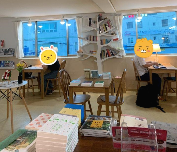 가까이서 책 표지와 책 내부는 찍지 않고 사장님의 허락을 받아 멀리서 내부모습을 찍었습니다. 너무 편안하고 아늑한 분위기였습니다. 안에 있던 손님들은 모두 혼자 오셨습니다.