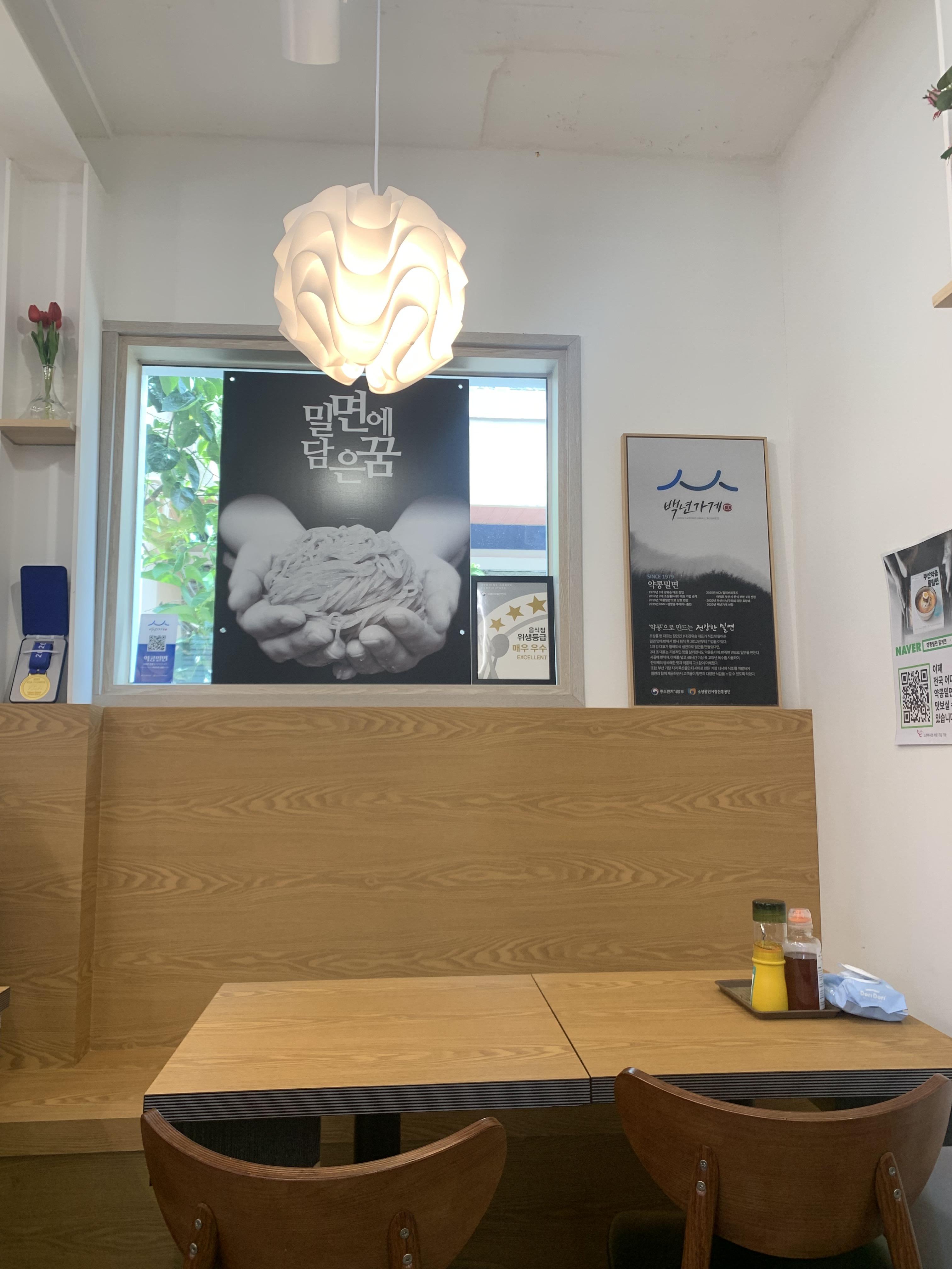 사장님의 철학이 물씬 느껴지는 약콩밀면의 공간.