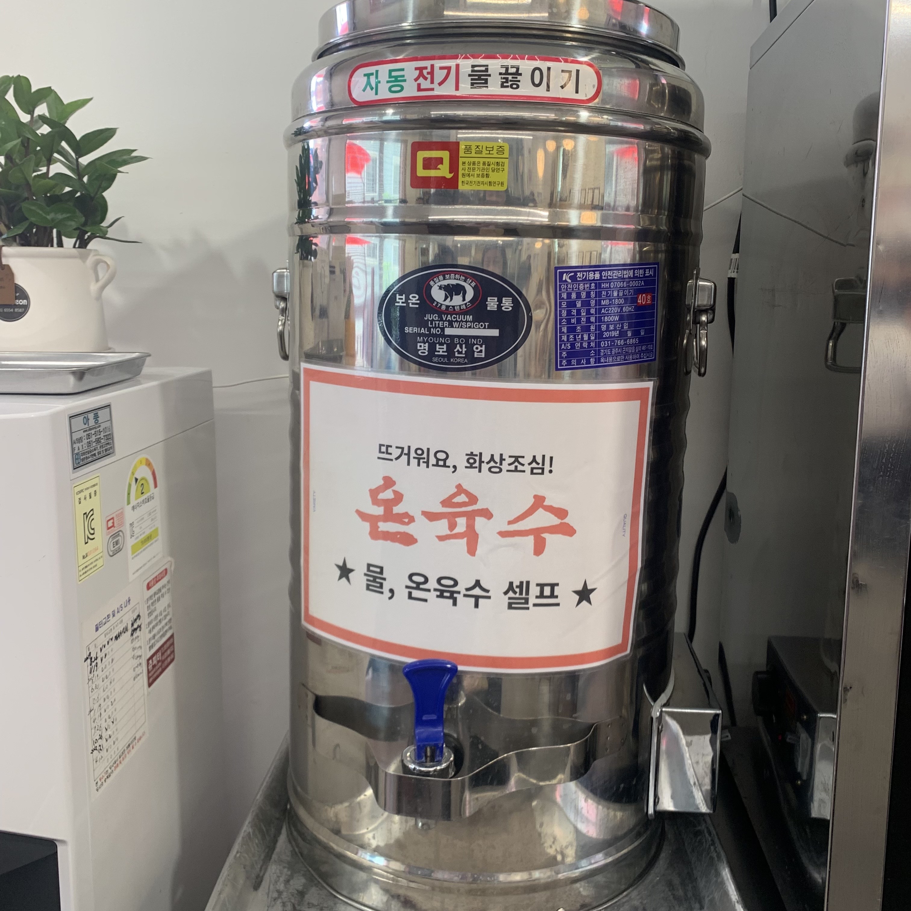 주문한 밀면을 기다리는 동안 온육수 떠와서 마시는 건 국룰이죠:)